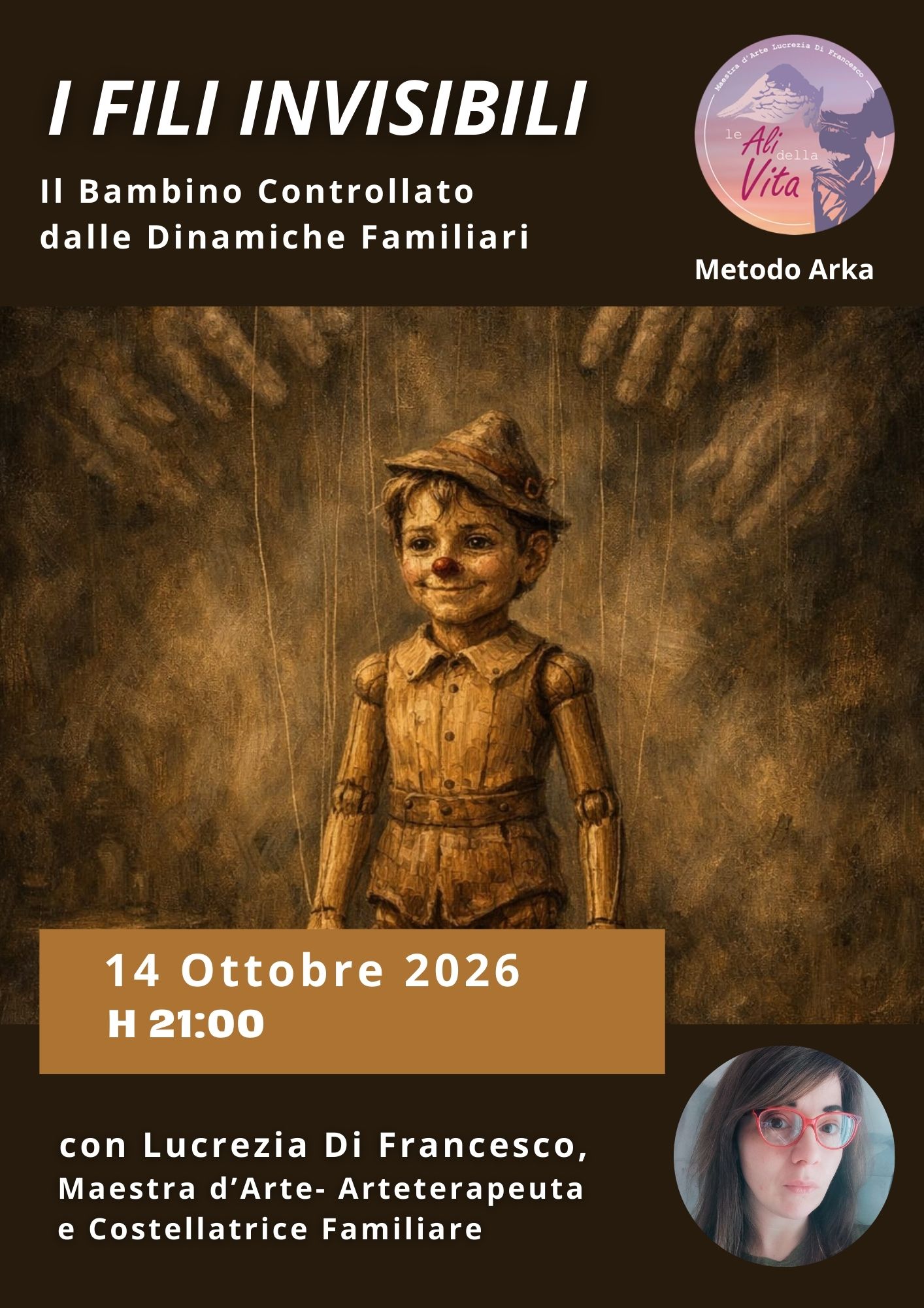 In questo secondo incontro del ciclo Oltre i Fili, esploreremo le dinamiche di controllo familiare che ci mantengono burattini inconsapevoli. Attraverso il Metodo ArKa e l’integrazione con le costellazioni familiari secondo Hellinger, porteremo alla luce le lealtà invisibili che governano le nostre scelte.